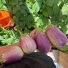 Story: A Czech bred early aubergine, this performed so well for us in 2025 that we are excited to hear more about all of your growing experiences this year. It is a high yielding variety with amazing flavour and we will be exploring growing it outdoors this year - a really favourite for us, it grew as a stocky, spineless plant and only suffered from aphid damage very late in the season. We used some supports from midsummer as they heavy fruit can weigh down or even snap branches!